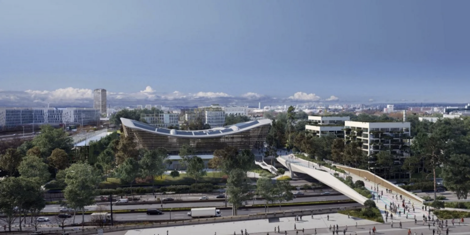 Na druhou stranu v Saint-Denis se francouzsko-nizozemský tým Ateliers 2/3/4/ a VenhoevenCS svým dílem pro vodní sporty Aquatics Centre s kapacitou pět tisíc míst za 189 milionů dolarů přiblížil cílům Pařížské dohody velice slibně. Střecha z CLT panelů ve tvaru vlny vyvolané šplouchnutím do vody je zavěšena na masivním dřevěném rámu o rozpětí 90 metrů. Naprostá většina materiálů by měla pocházet z přírodních zdrojů, racionální hmota architektury minimalizuje objem, který je třeba vytápět nebo chladit, a střecha nese až pět tisíc čtverečních metrů fotovoltaických článků, jež by údajně měly být největší solární městskou farmou ve Francii. Objekt Aquatics Centre, který je se Stade de France spojen novou lávkou přes dálnici A1, budou po skončení her využívat místní kluby i Francouzská plavecká federace.