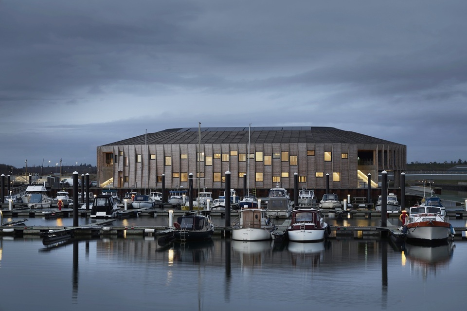 V přístavním městě Esbjerg na západním pobřeží Dánska se v roce 2023 otevřelo veřejnosti nové námořní centrum. Na základě soutěže o návrh v roce 2019 ho vytvořily dva severské ateliéry. Vzniklo na umělém ostrově vedle stávajícího přístavu jako sdílený prostor pro kluby vodních sportů a návštěvníky. Dům slouží nejen jako společenské centrum, ale také poskytuje městu novou architektonickou dominantu. Dřevěnému kolosu se ihned začalo přezdívat „lucerna“, protože v noci okny prosvítá teplá záře.